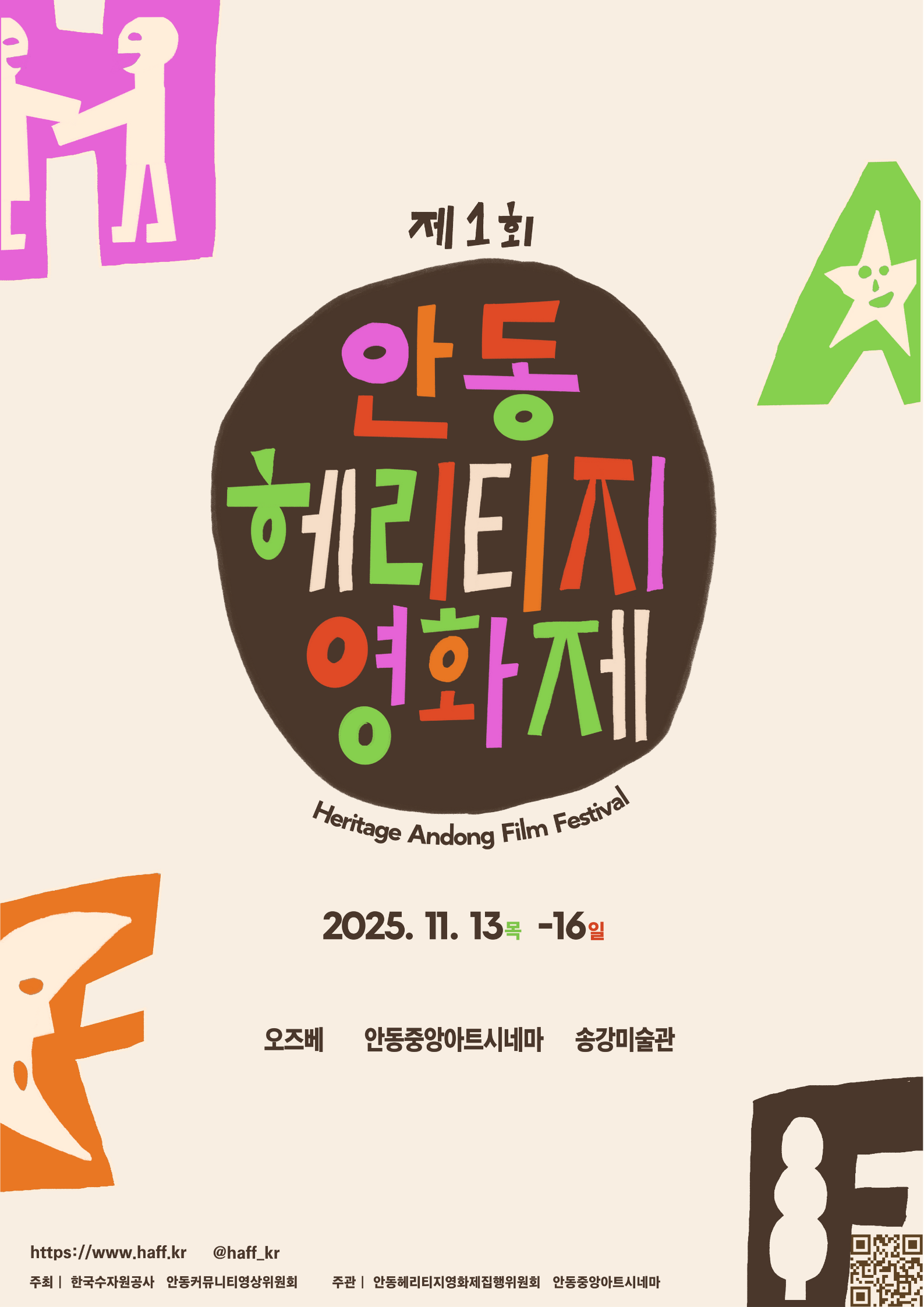 The Heritage Andong Film Festival (HAFF) is a community-based film festival centered on cultural heritage, documenting and sharing the region’s history, culture, memories, and lives through cinema. Set in Andong, where tradition and modern life coexist, the festival reinterprets everyday life and heritage through the eyes of local citizens, capturing them in the language of film.